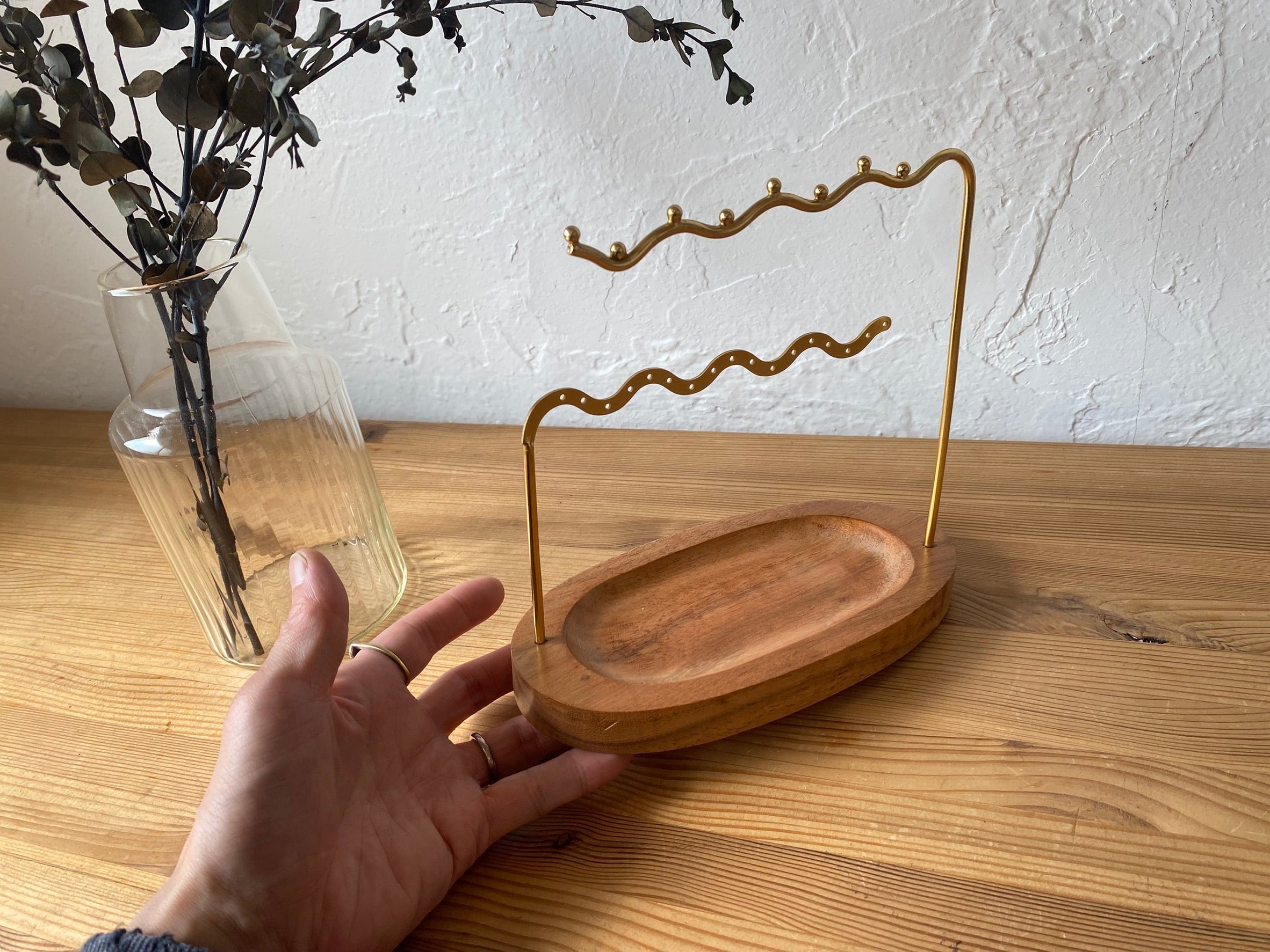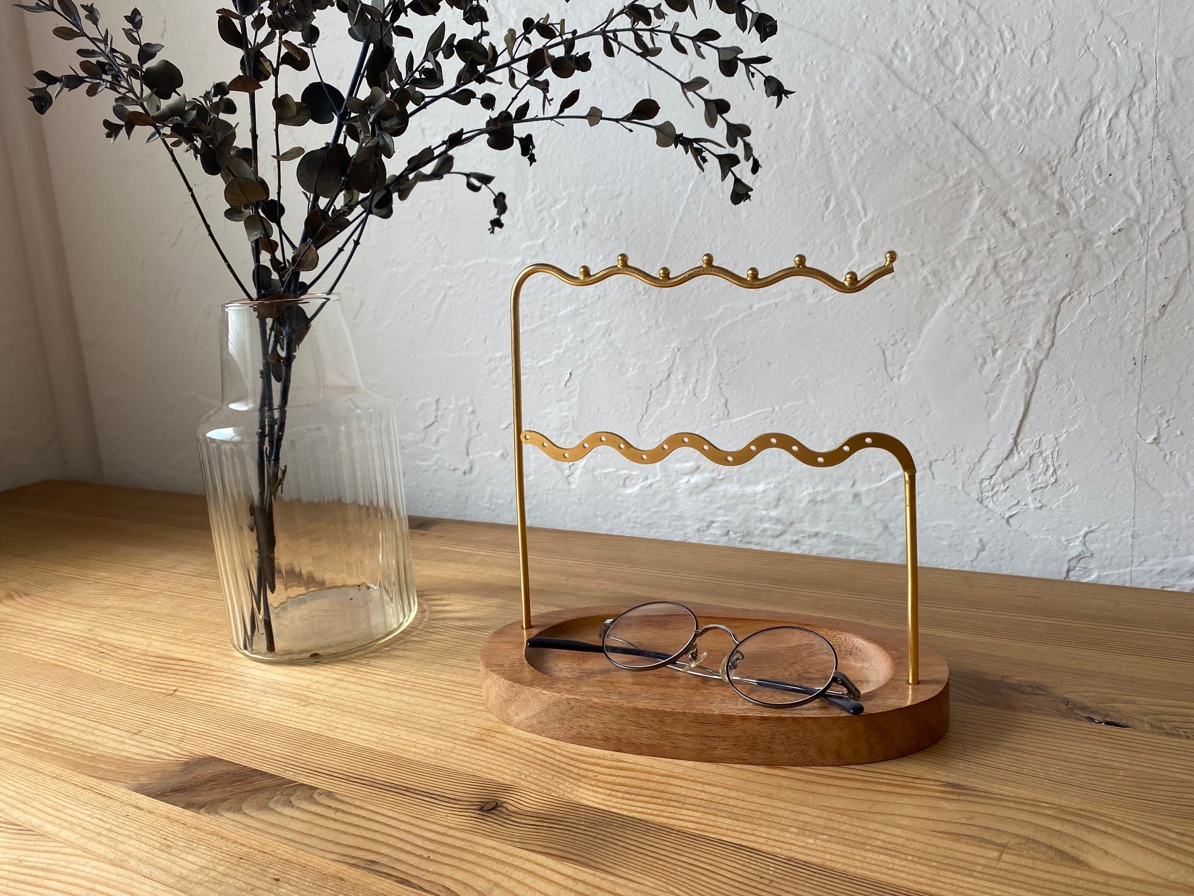 アクセサリーをアイアンで出来た波状のバーに掛けて見せる収納を楽しめるアクセサリースタンド。