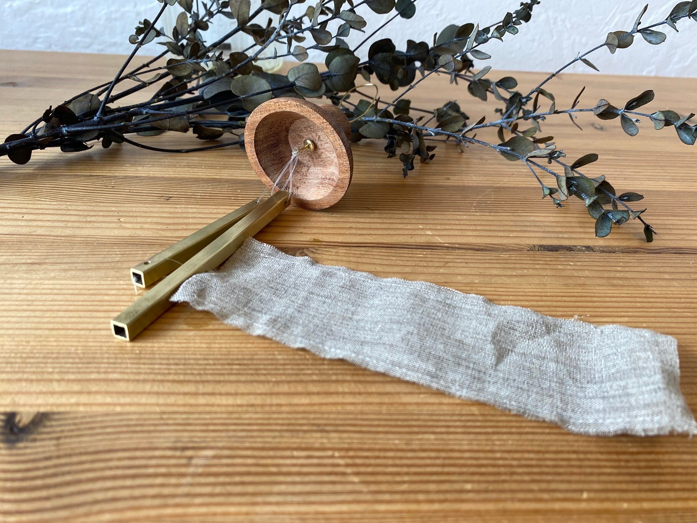 リネンの風受けは自然素材の質感を活かしたデザインで、風に揺れるたびに柔らかく穏やかな響きを奏でます。