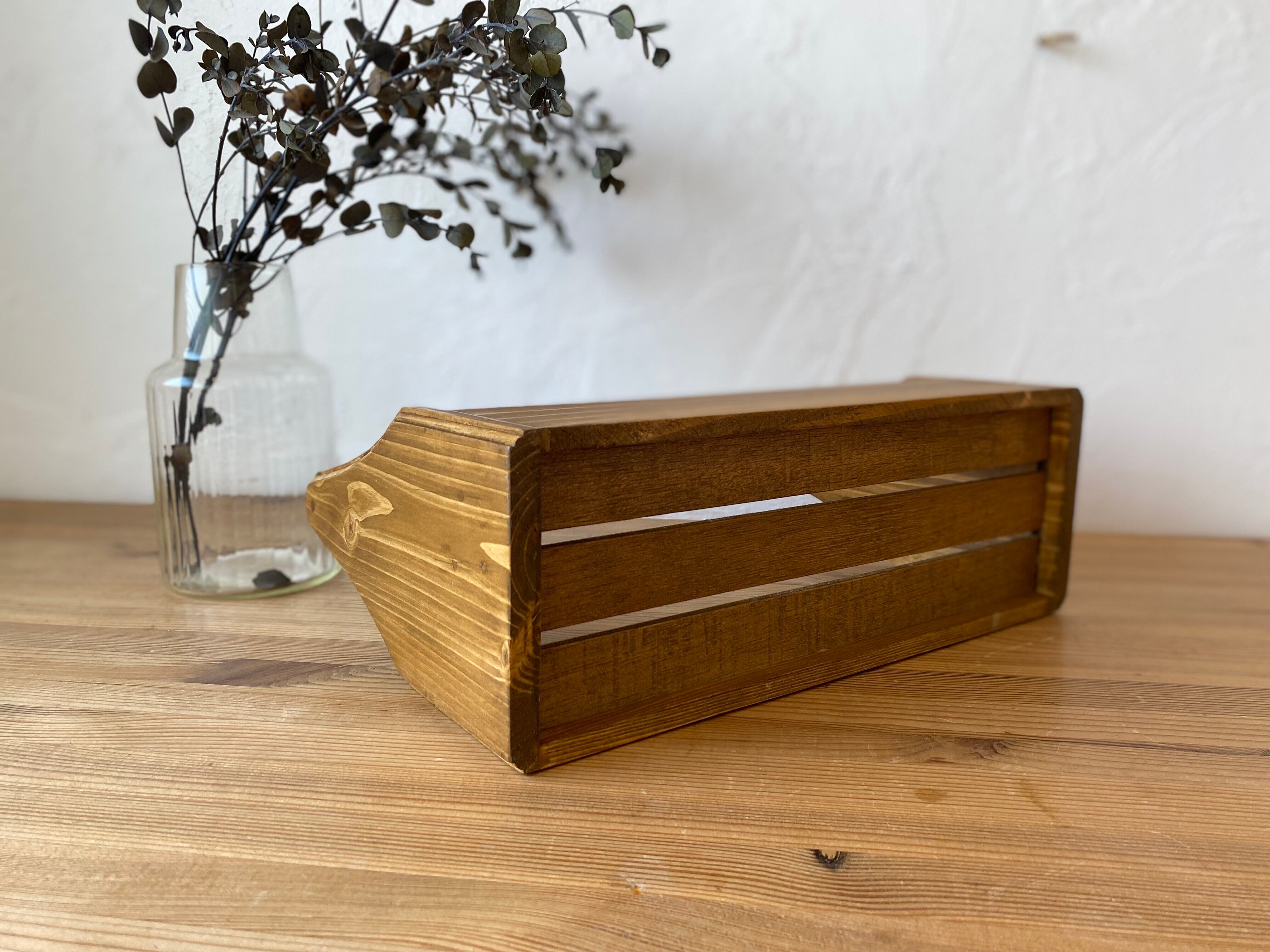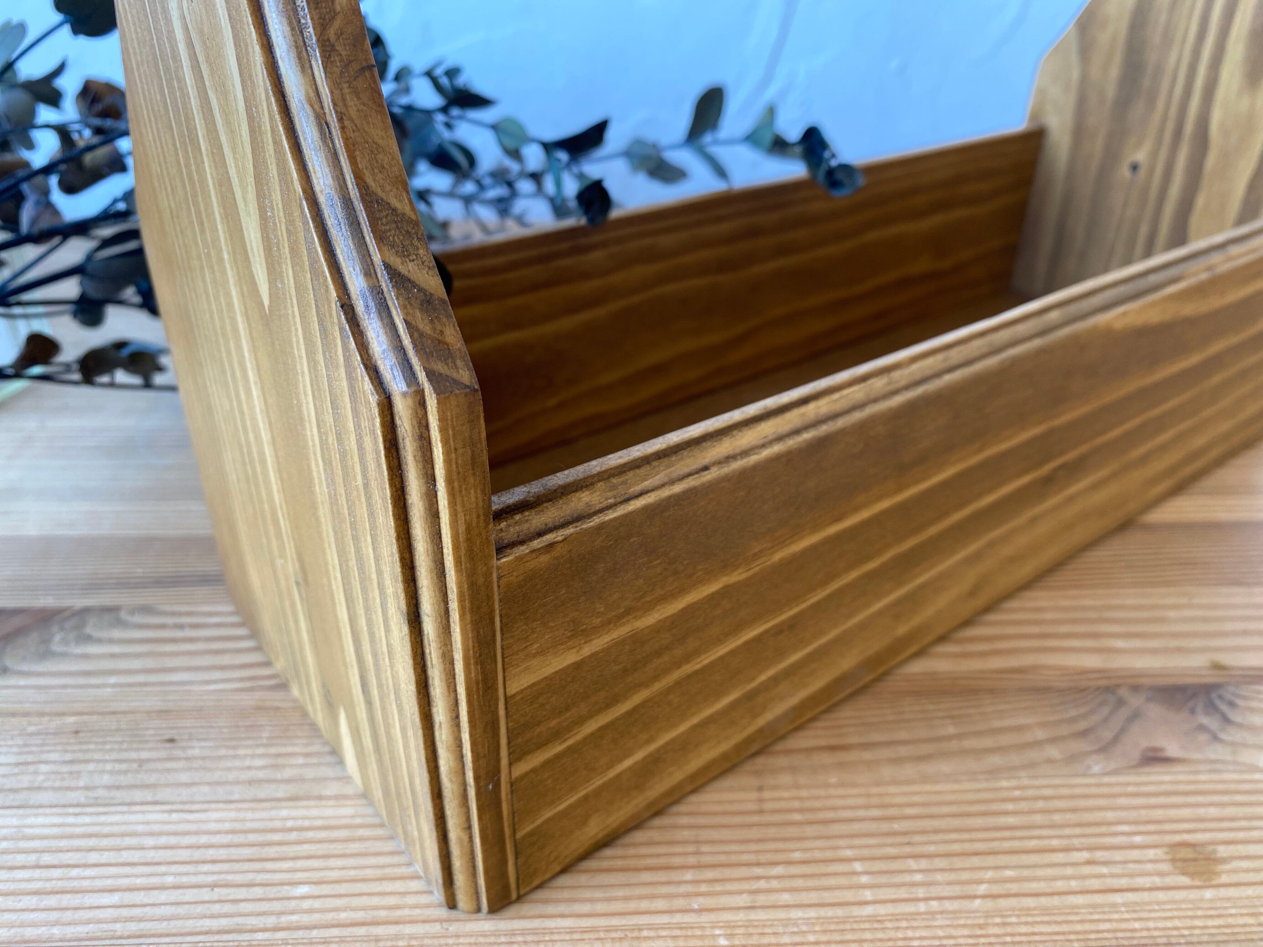 キッチンやリビングの小物収納に使える、パイン材を使用したツールボックスです。
