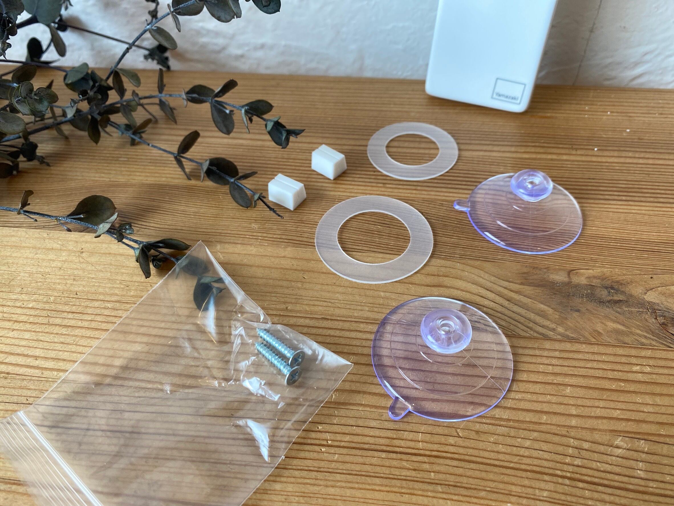 取り付け可能な壁面 吸盤:光沢のある平らな面、タイル、プラスチック面、ステンレス、金属塗装面 木ネジ:柱・板壁・プリント合板(裏側に水平にサンがある場所)