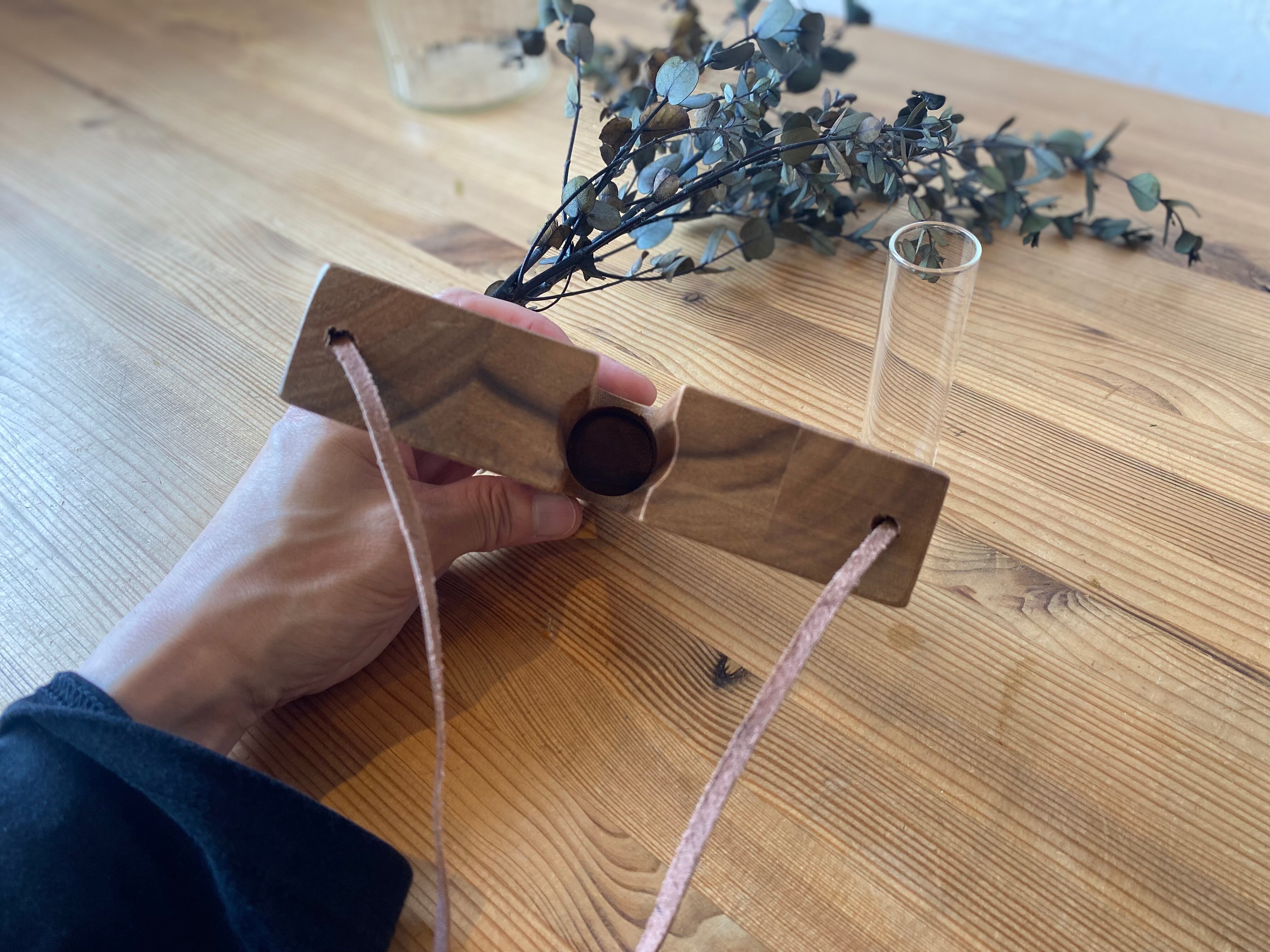 レザーの紐付きなので、草花を楽しみながら 壁面や空間を彩ることができるアイテムです。
