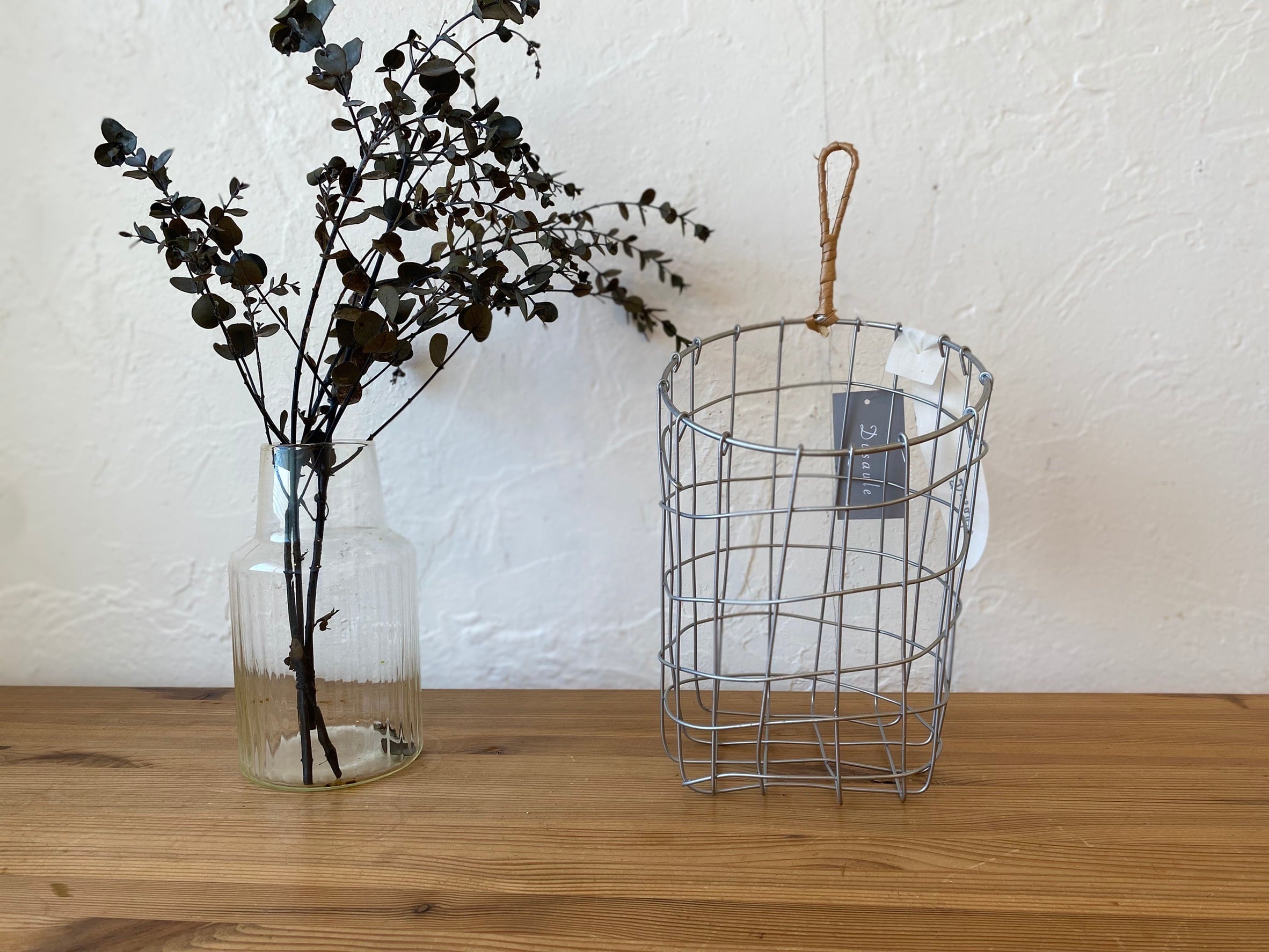 Dusaule(デュソール)シリーズは落ち着いたシルバー塗装で仕上げ、アクセントに柳を使ったワイヤーバスケットです。