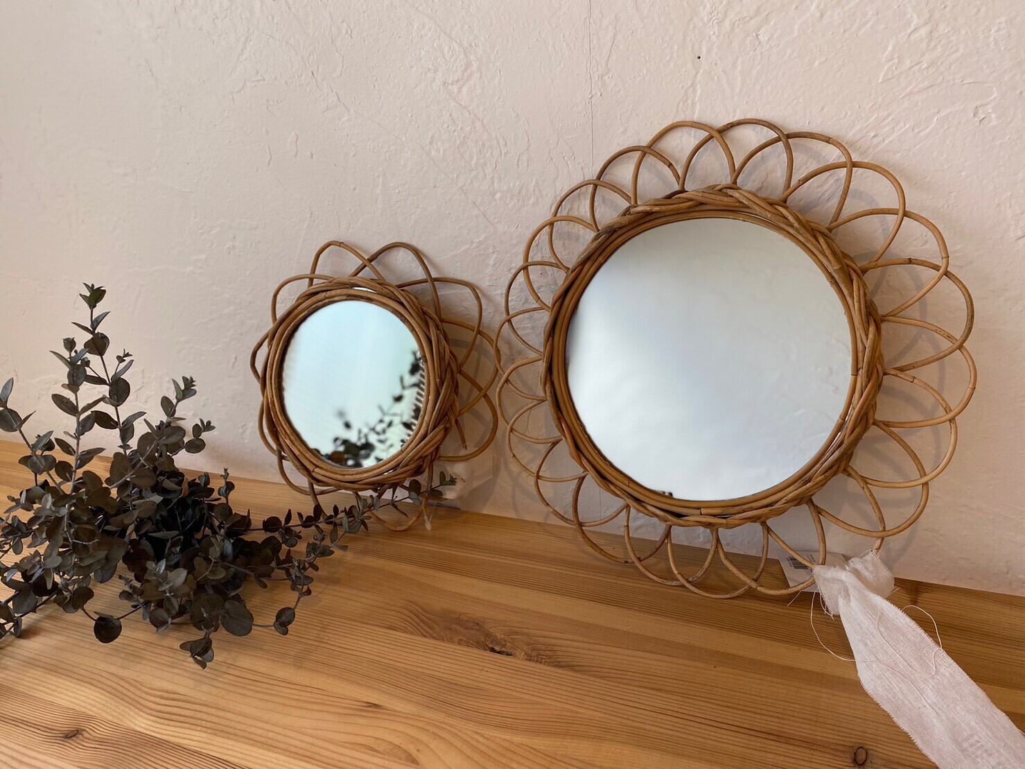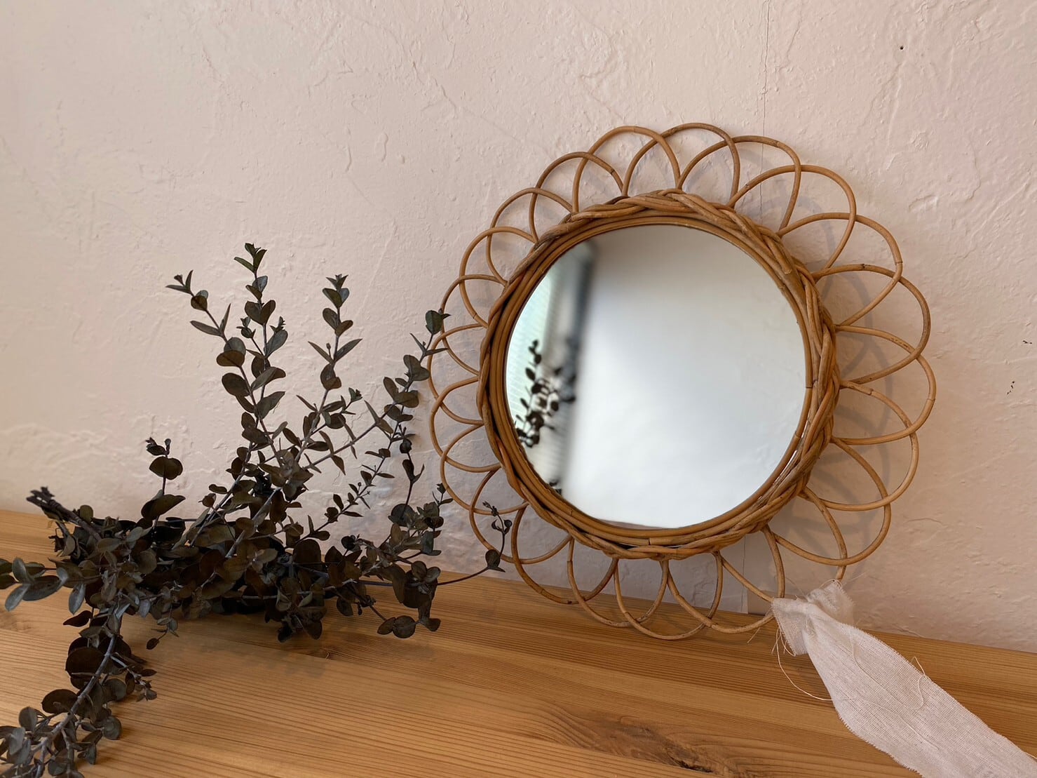 ヨーロッパの蚤の市でみつけたような風合いと優しい印象に感じるフラワーミラー