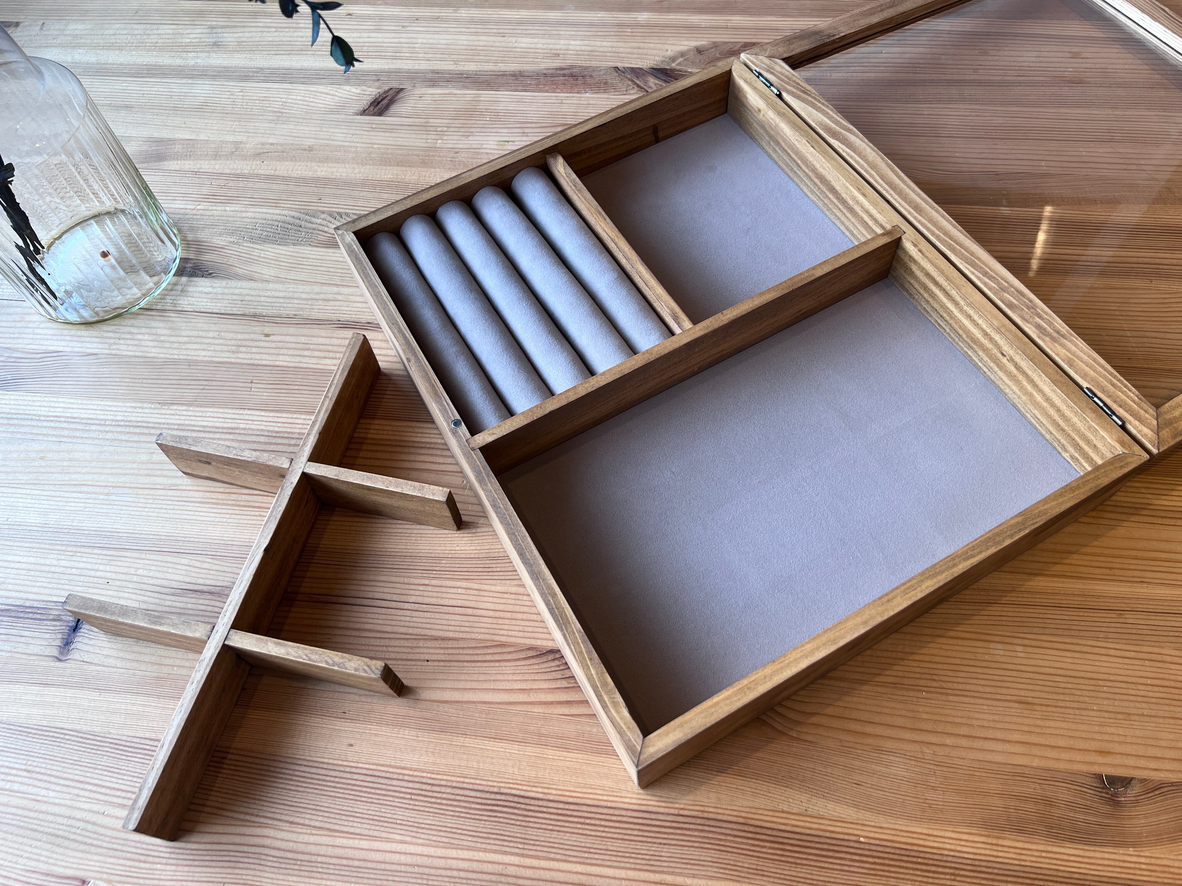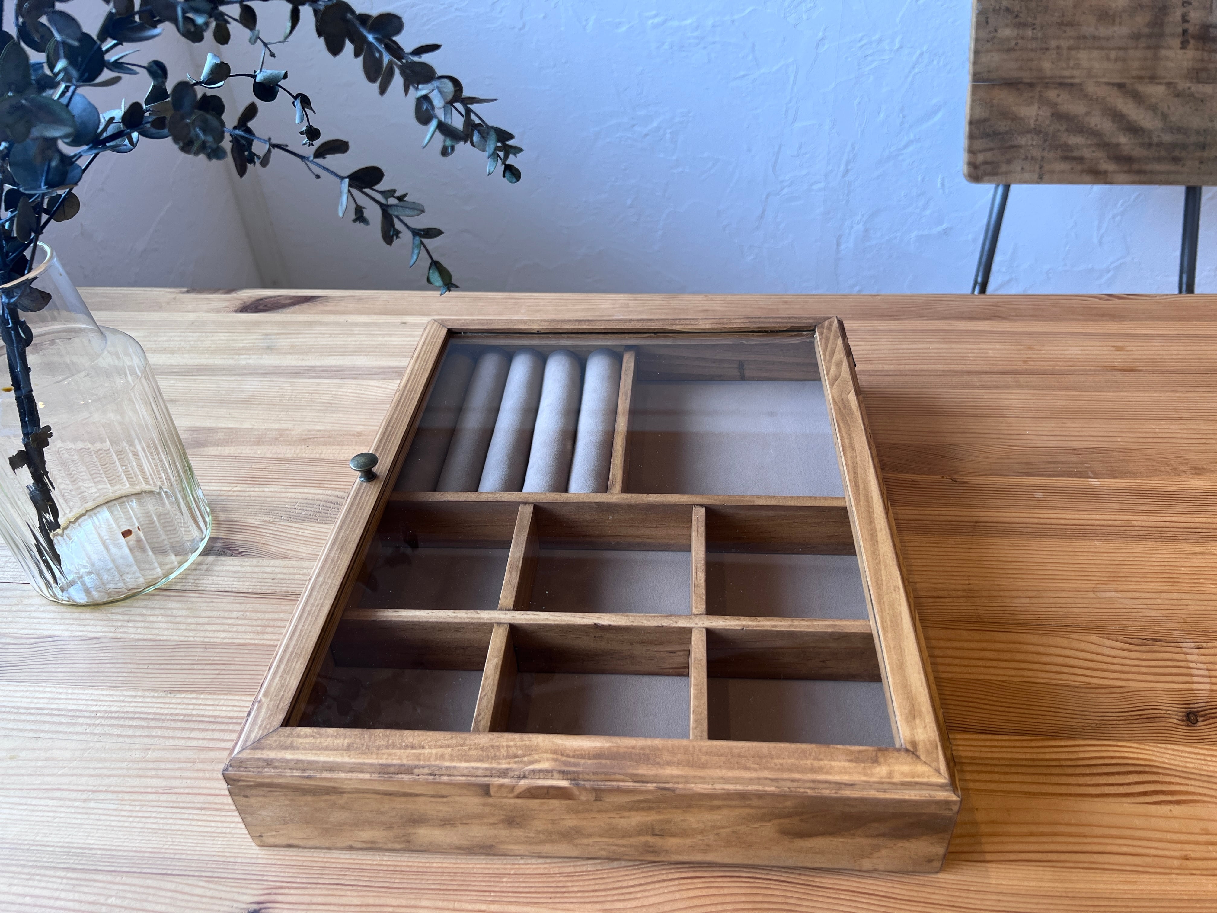 パイン材を使用しアンティークのような風合いに仕上げたアクセサリーケース。