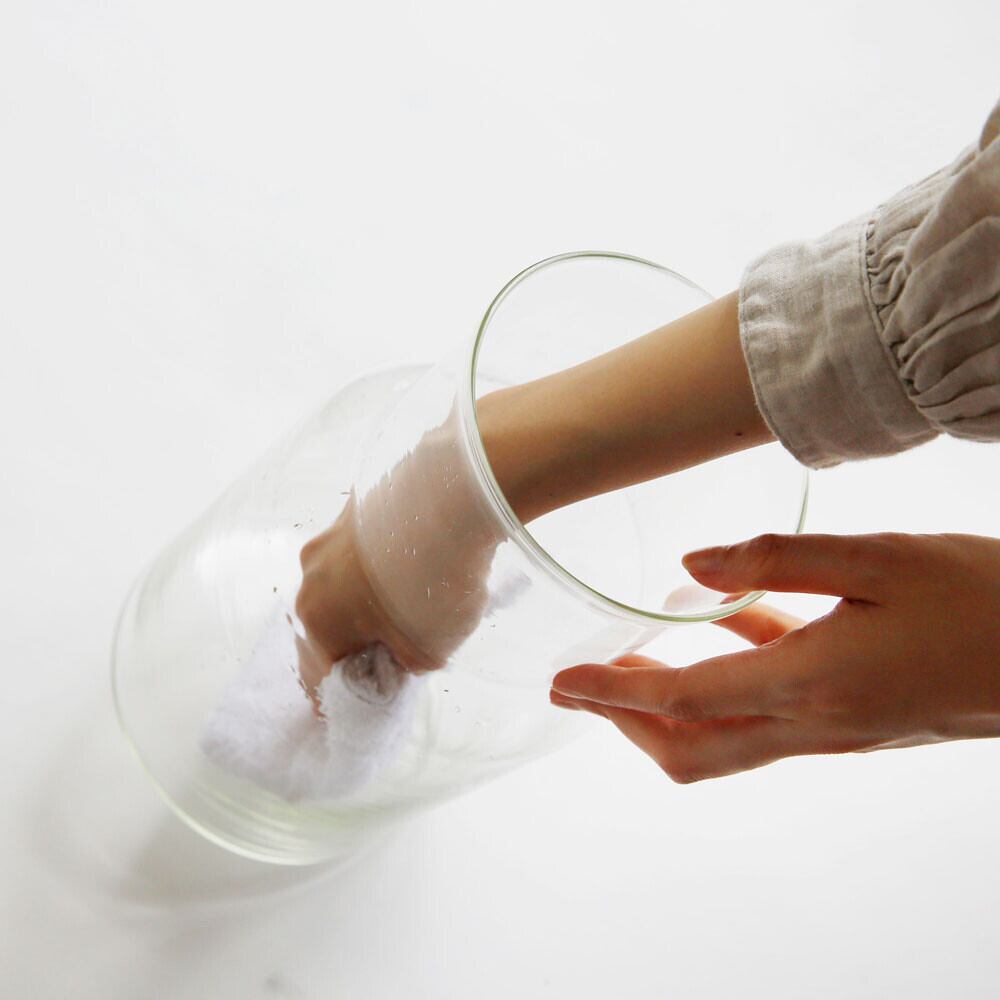 表面に細かなしわが寄ったり、細いラインのようなものが入ったり、小さな気泡や黒い斑点、突起等が見られる場合がございますが、ガラスという素材の特性や製造工程の中で発生するものですのでご了承ください。ガラスを洗浄する場合は中性洗剤を使用し、破損の原因になる為、食器洗浄機・食器乾燥機のご使用はお控えください。クレンザーやガラスに傷のつく研磨材または研磨材粒子のついているスポンジなどは使用しないでください。
