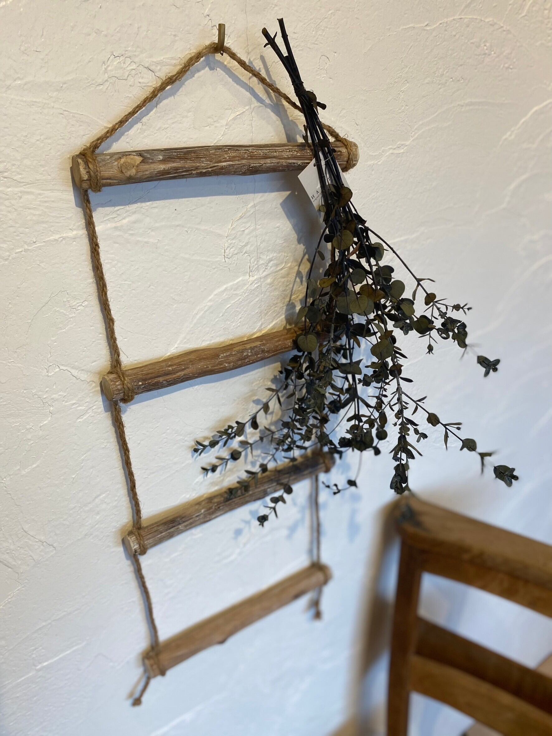 ・木の枝がやわらかい印象で温かみのあるナチュラルテイストな吊り下げ用ラダー