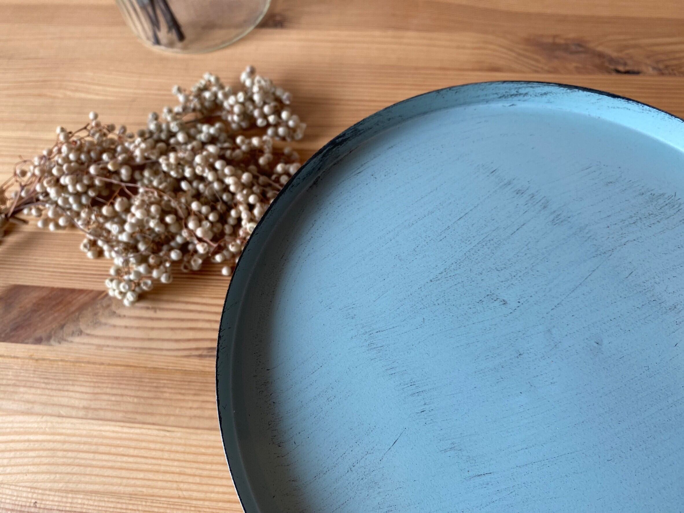 アンティークな雰囲気のシャビーブルーでお花を惹きたてます