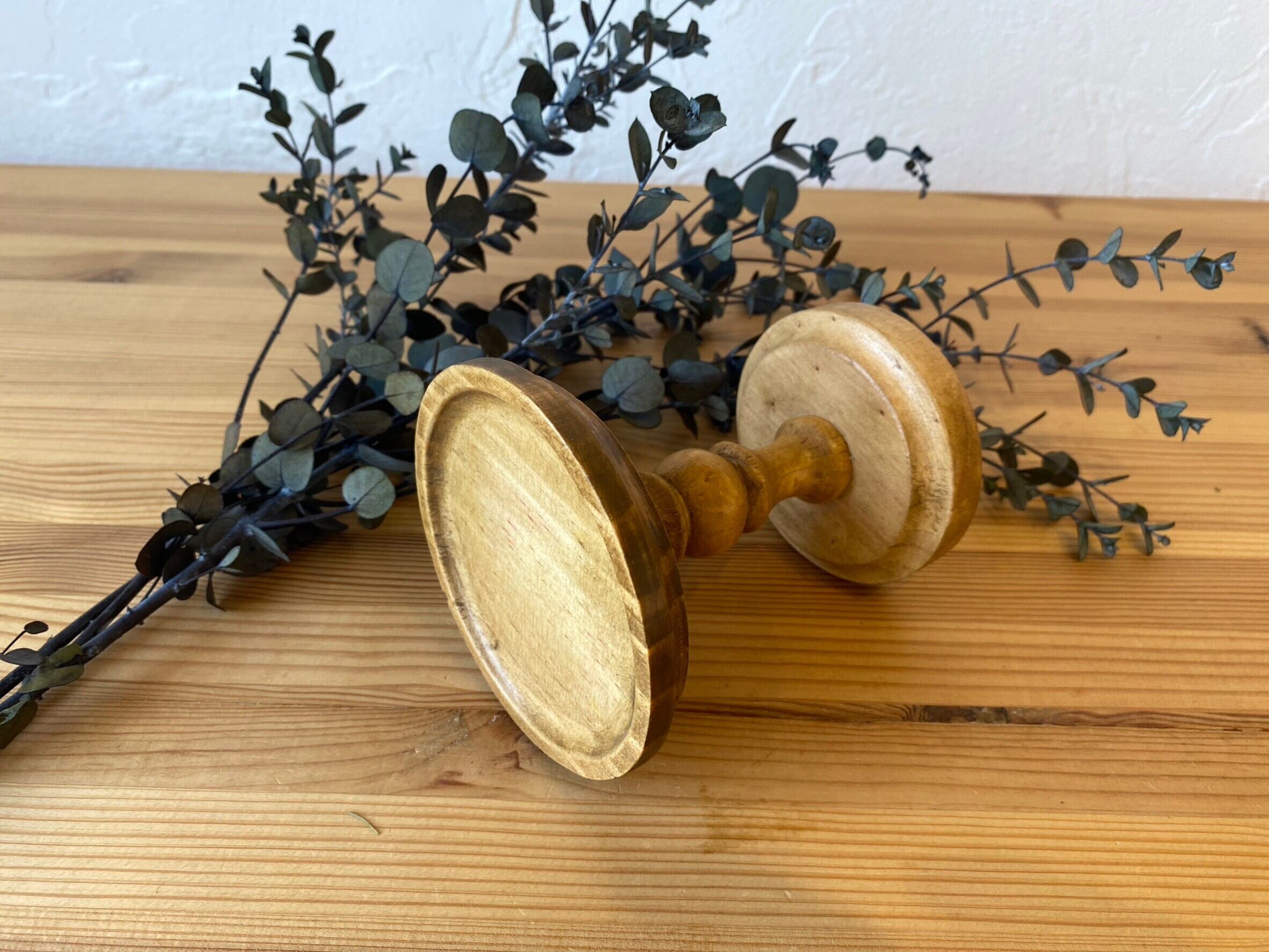 天然木の風合いを活かしたアンティーク風のキャンドルスタンド。
