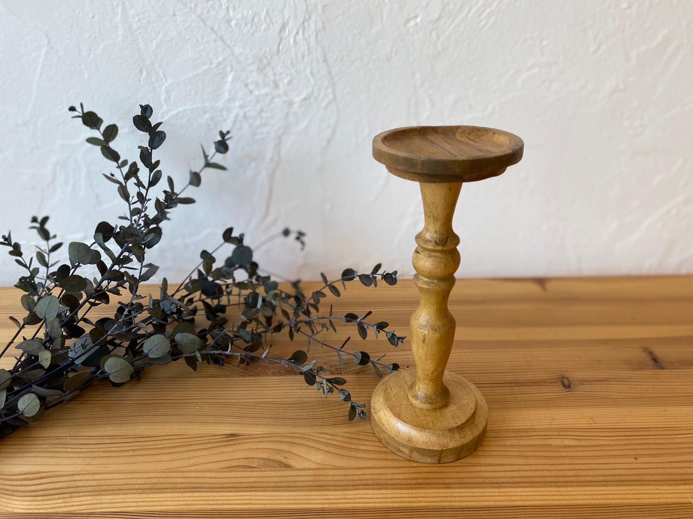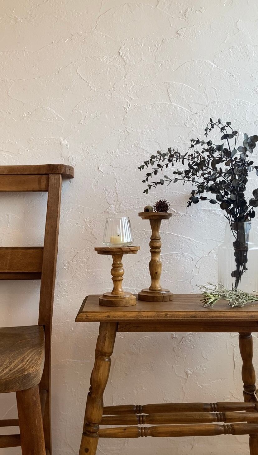 天然木の風合いを活かしたアンティーク風のキャンドルスタンド。