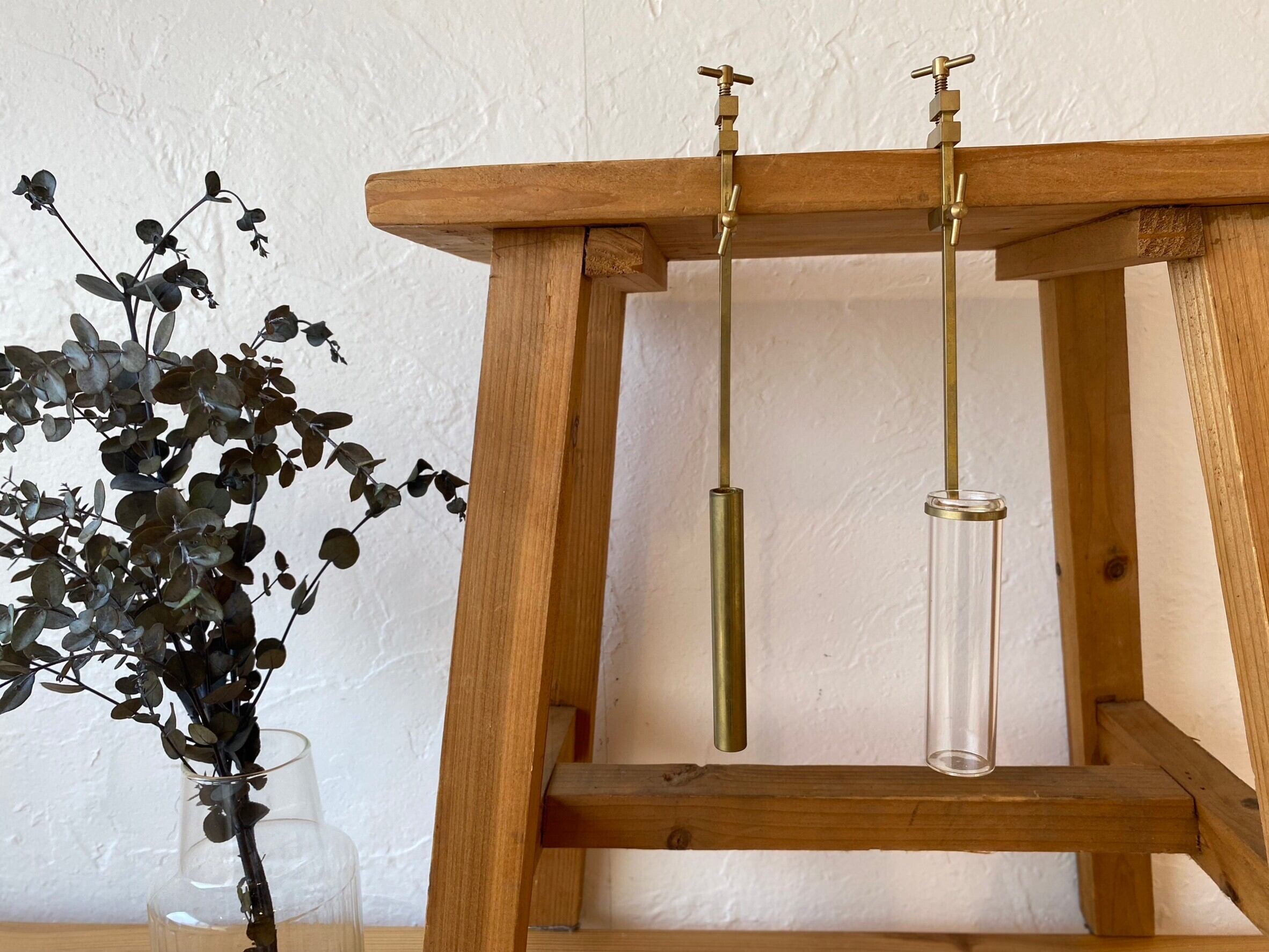 真鍮のハタガネを窓枠や柱などにはさんで飾る一輪挿し