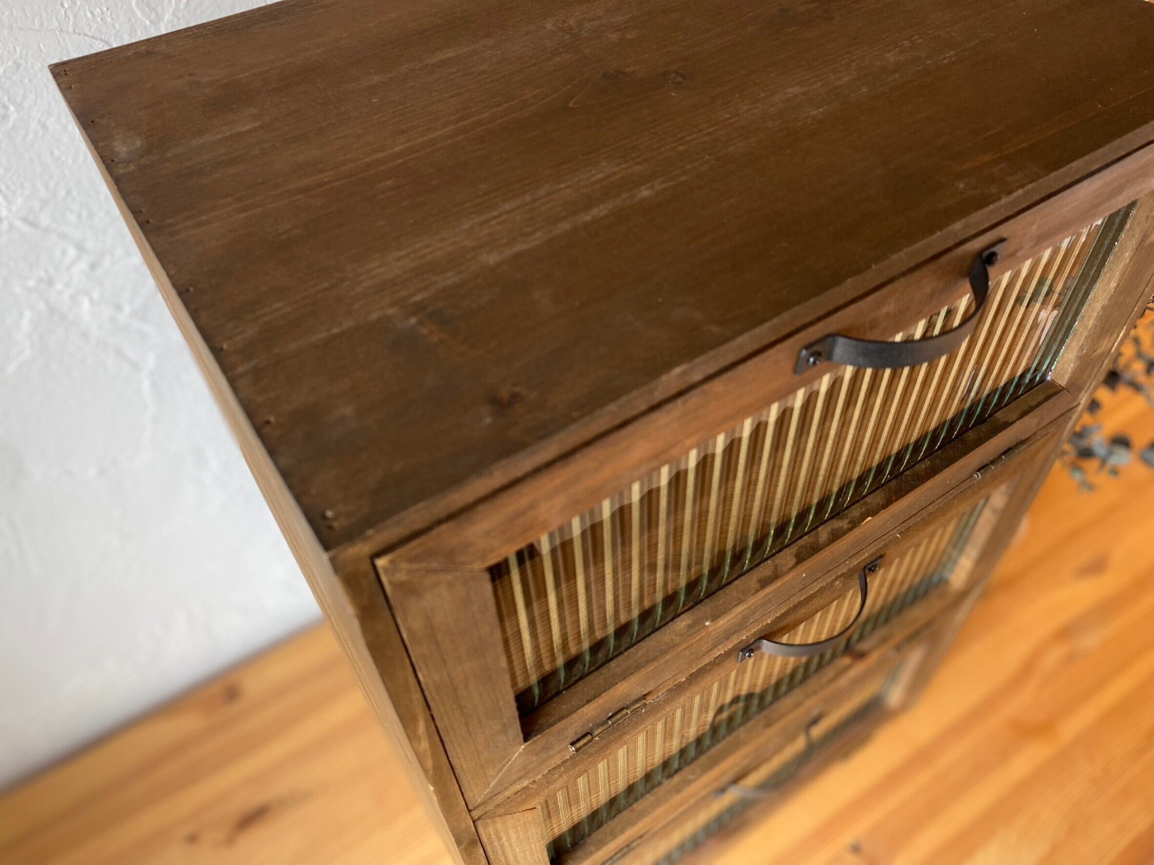 3段ともにレトロガラスを使ったフラップ扉を使用しています。