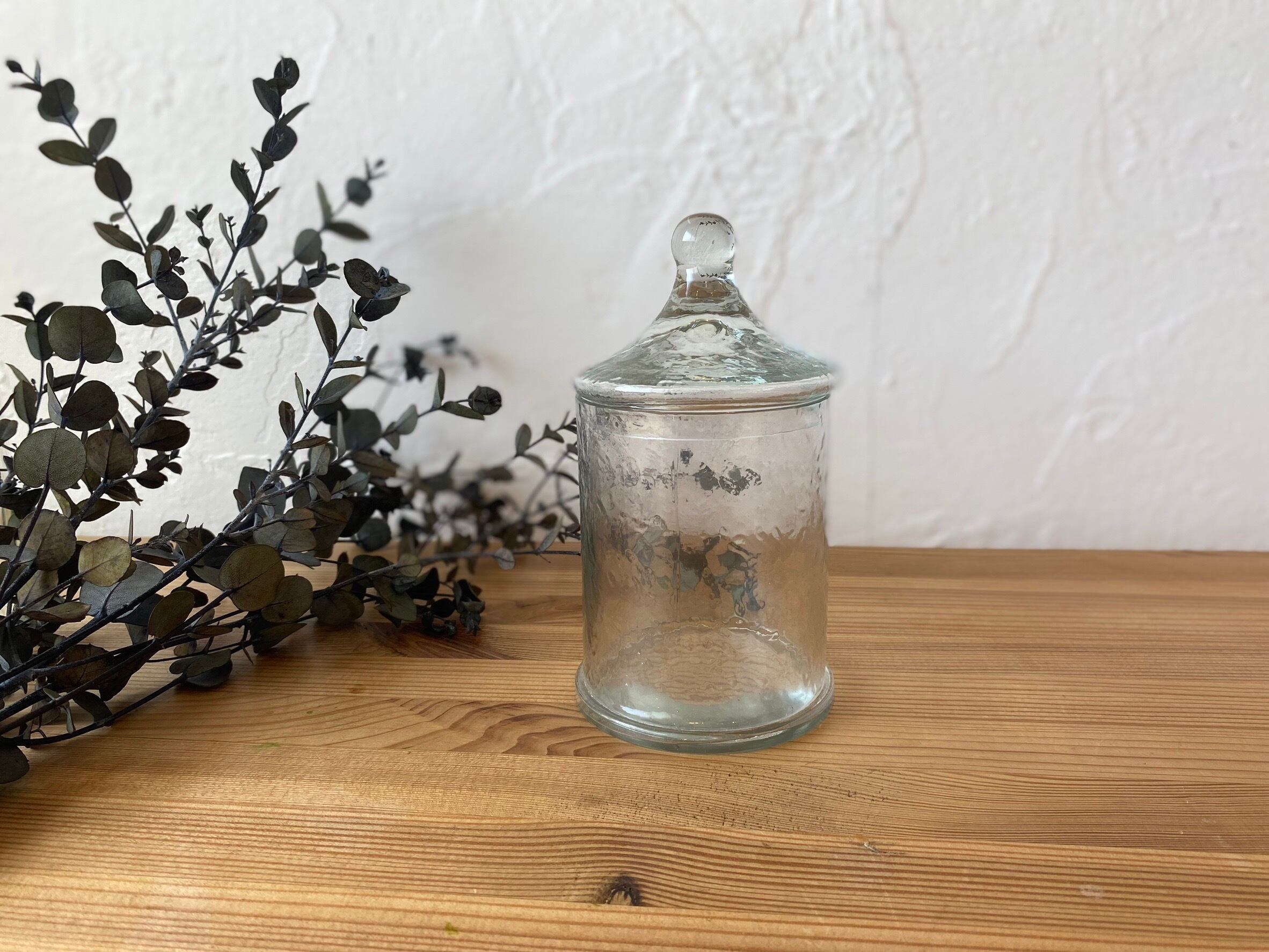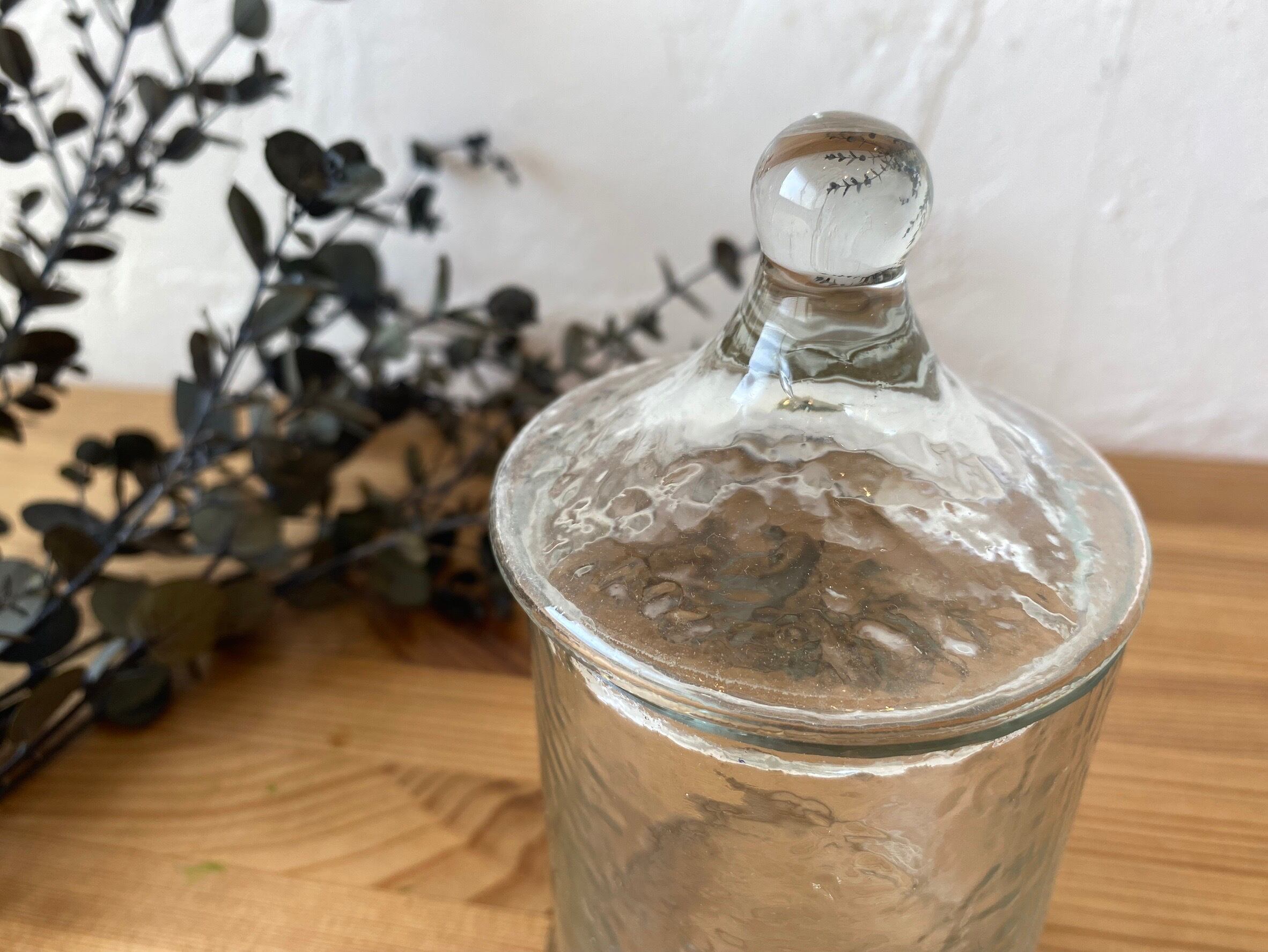 ガラスのゆらぎが美しい凹凸のあるテクスチャー入りガラスキャニスターのハイタイプ。