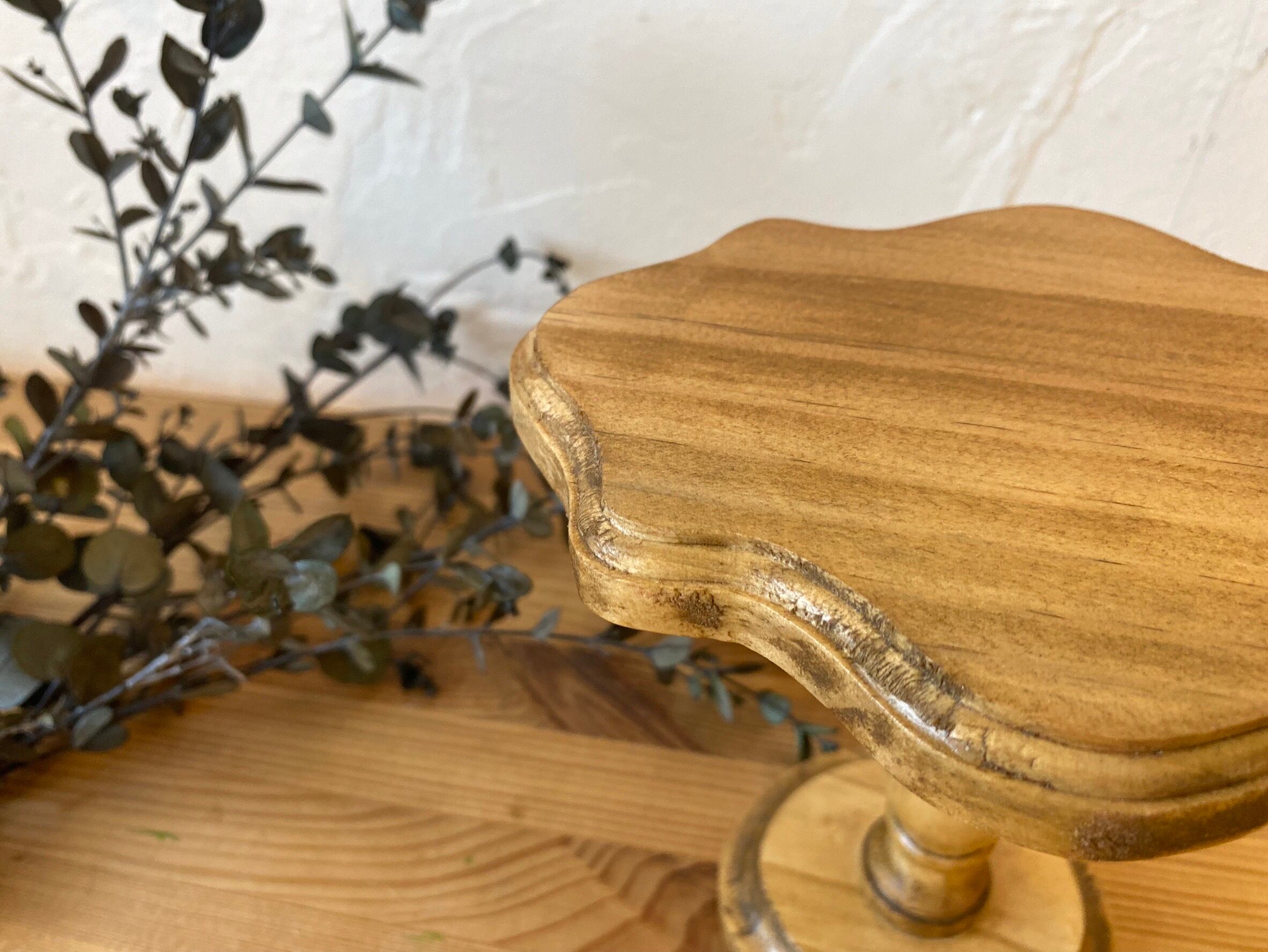 天板の形と高さの違うSとLの2サイズ。素材には軽いパイン材を使用しており、アンティークのような重厚感を出すために一つ一つ手作業で塗装を行っています