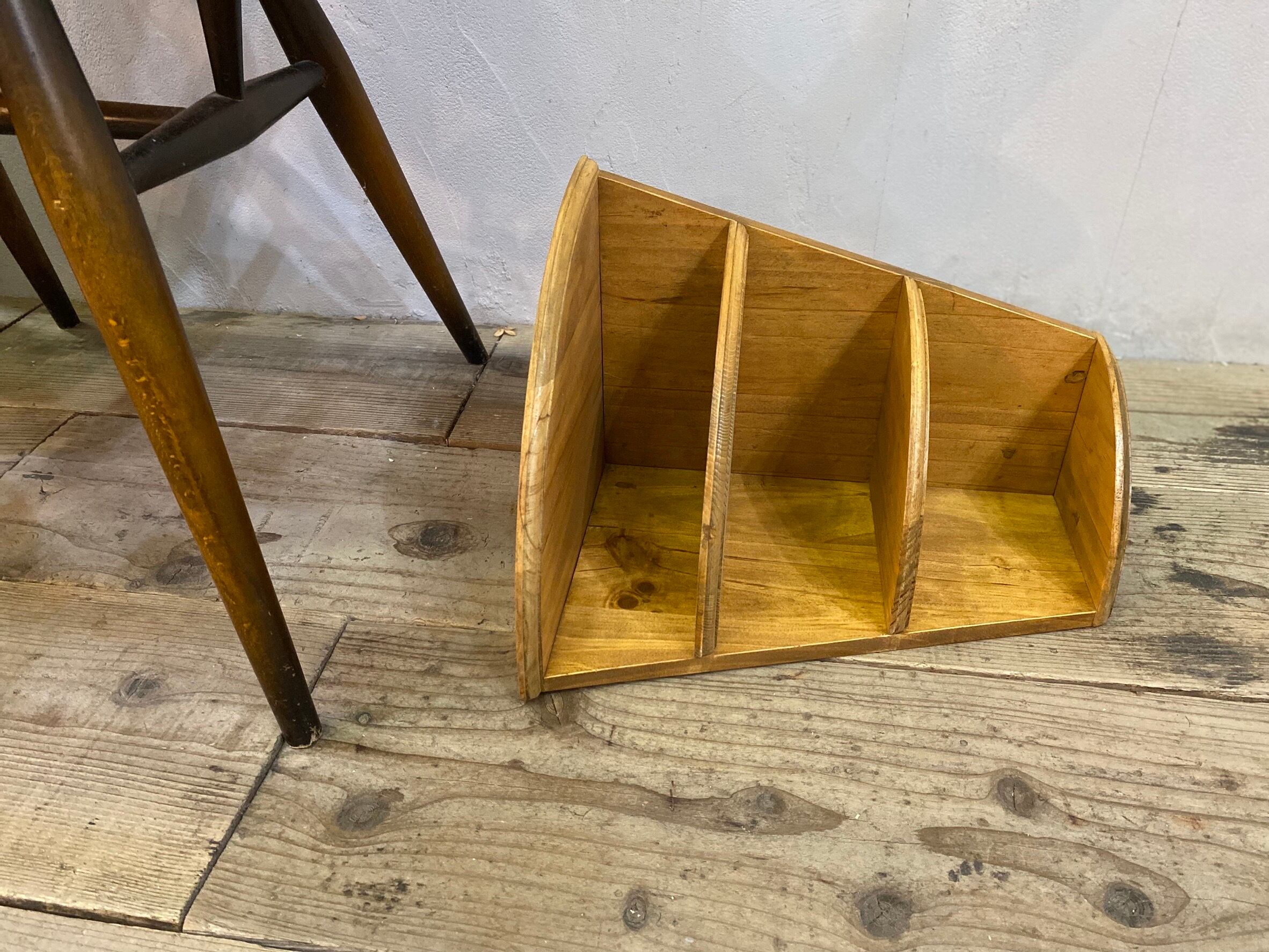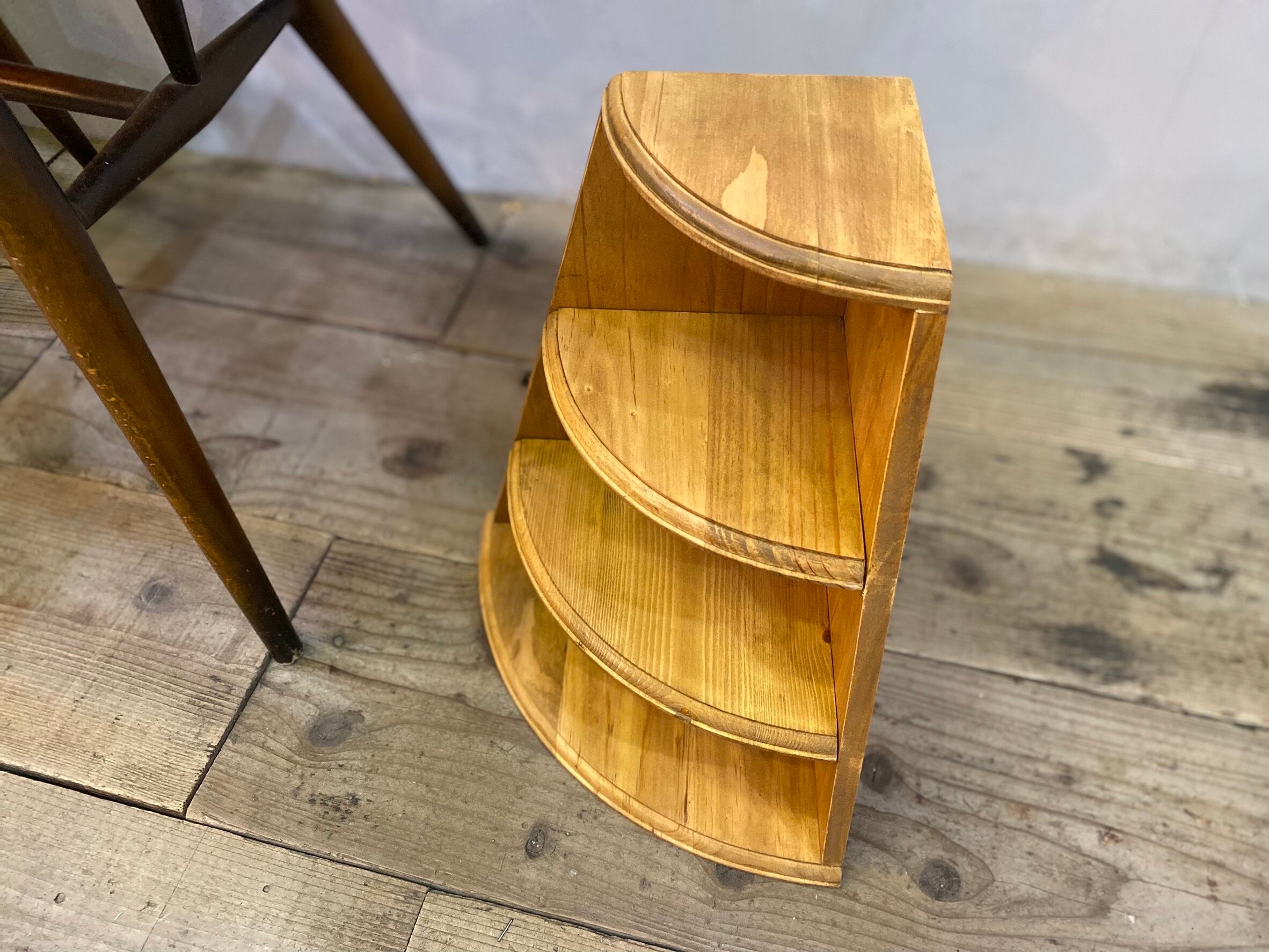 アンティークのような雰囲気のあるパイン材のコーナーブックスタンド