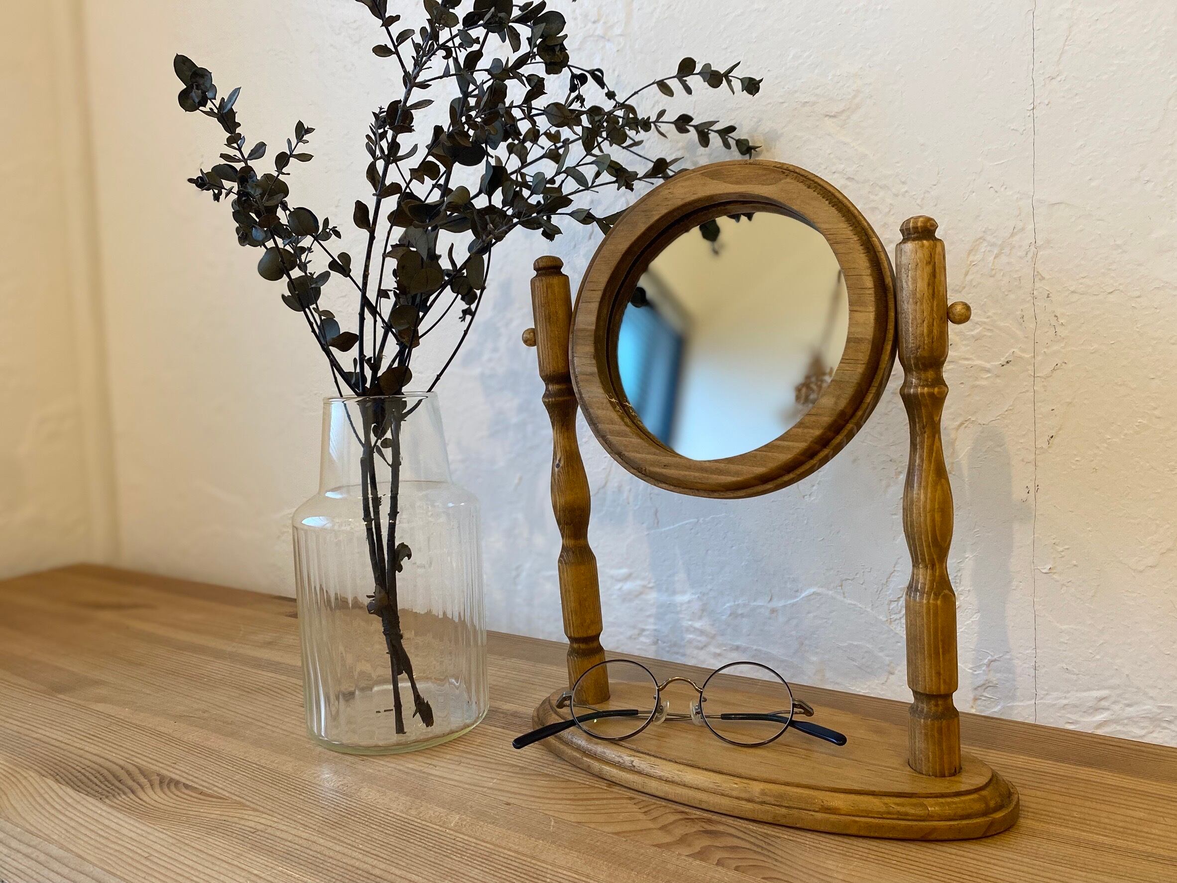 パイン材を使用したヴィンテージ調のスタンドミラー