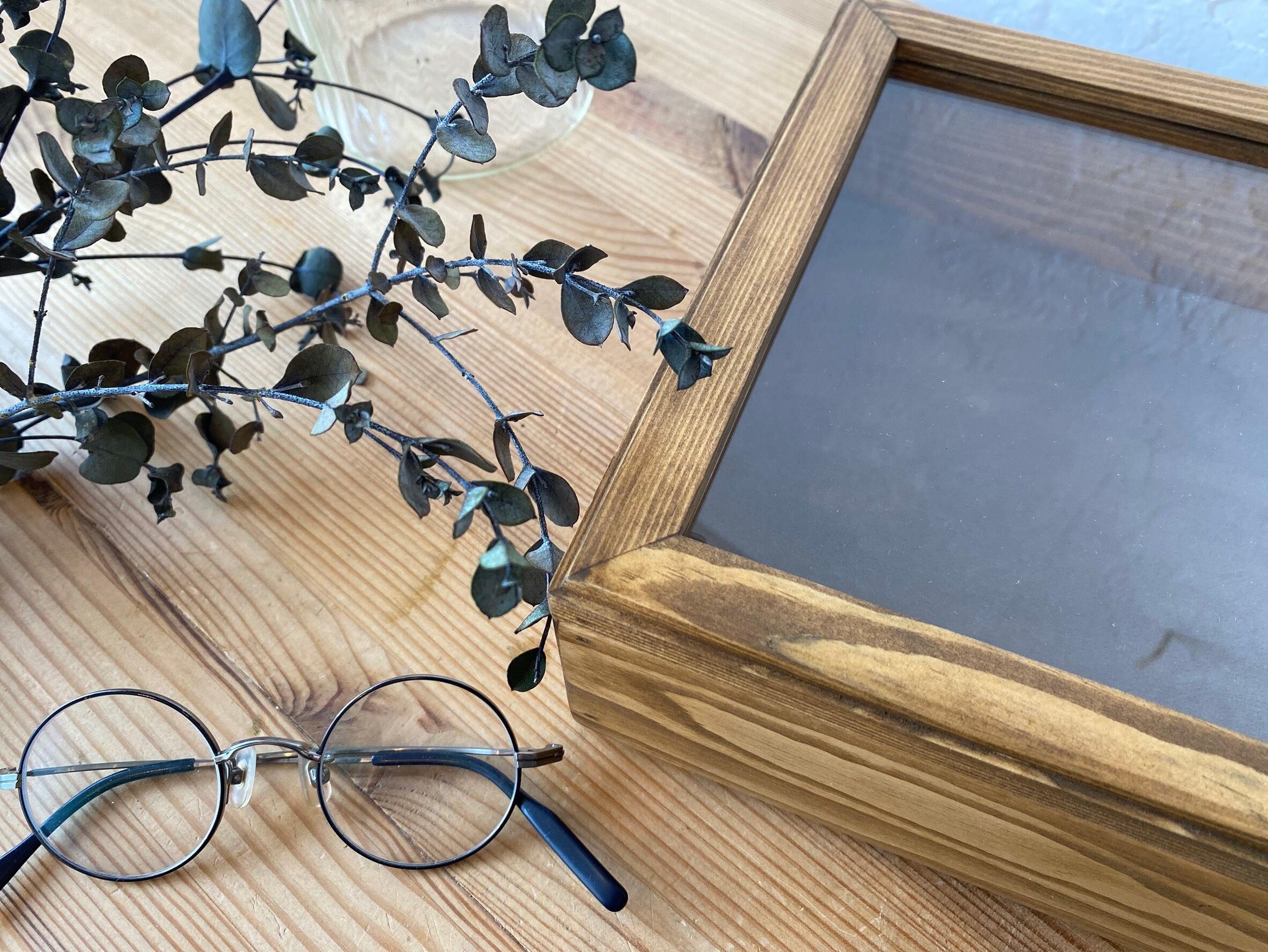 蓋がガラス面になっているため、中身が一目で分かり、お店にいるような感覚でアクセサリー選びが楽しめます。